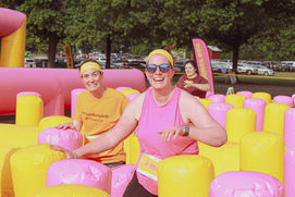 Expect a 5K inflatable course packed with big bounces, giant slides, and nonstop laughs. It’s a looped course, with 15+ unique inflatables per loop (subject to venue - loop specifications communicated per event).